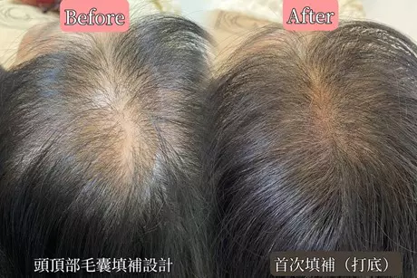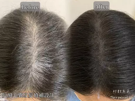 分邊線缺髮填補主要針對長期頭髮分邊(中/旁分)造成分邊線稀疏,能改善分界處的髮量稀疏或禿髮情況,讓分邊線更自然。